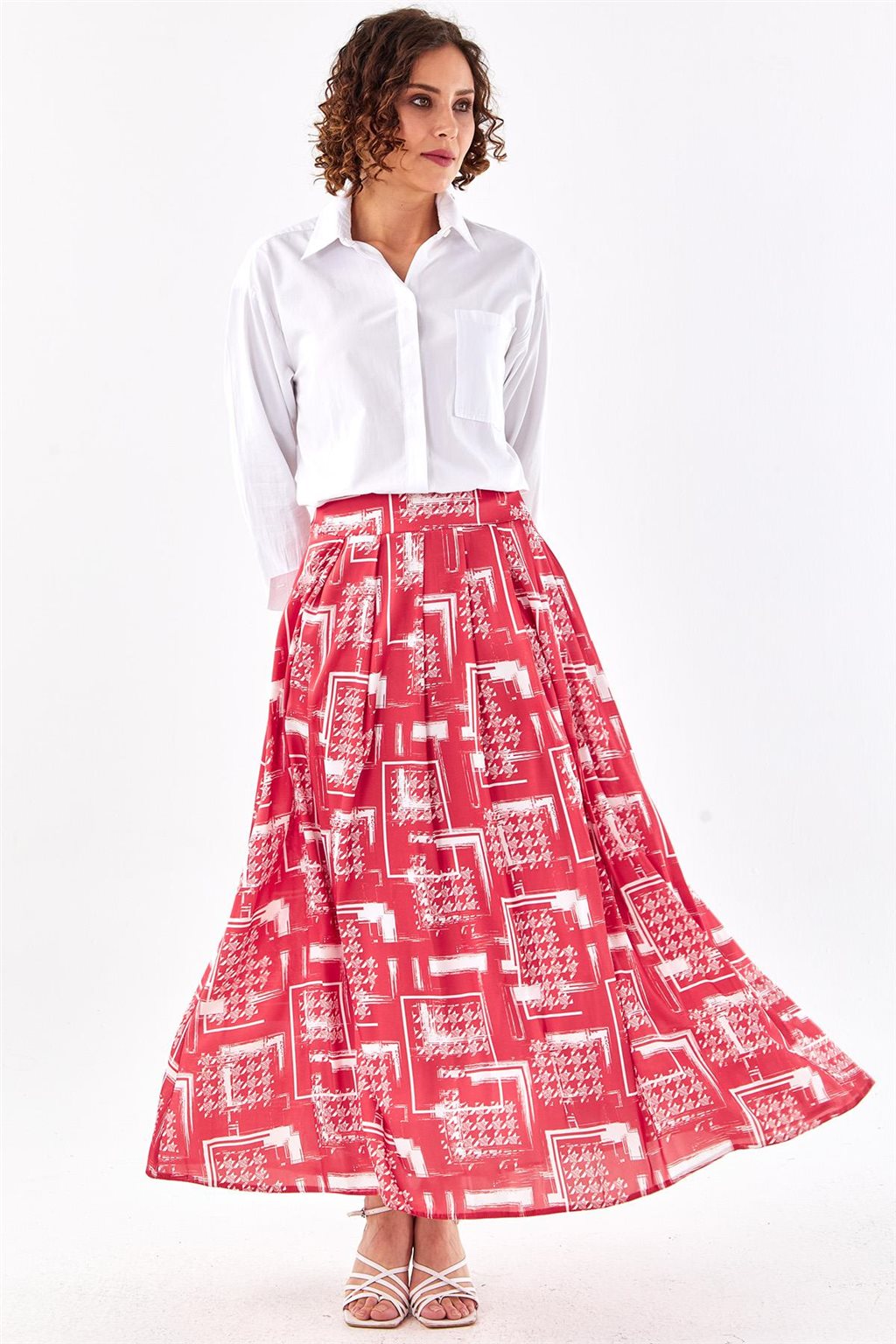The Abstract Print Pleated Skirt stands out with its unique design. The high waist cut gently shapes the body, while the abstract print adds a modern touch. You can complete your daily style by pairing it with basic shirts or accessories.