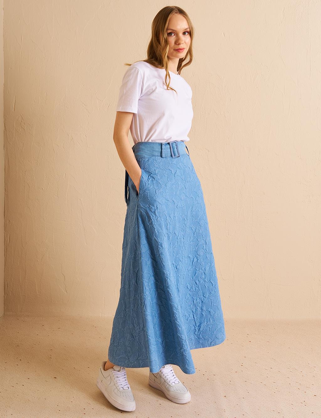 The Kayra Embossed High-Waisted Skirt stands out with its figure-hugging high waist and flared cut. Feminine and elegant, this design can be easily worn in any setting. Pair it with basic shirts, jacket or t-shirt for a stylish, effortless look.