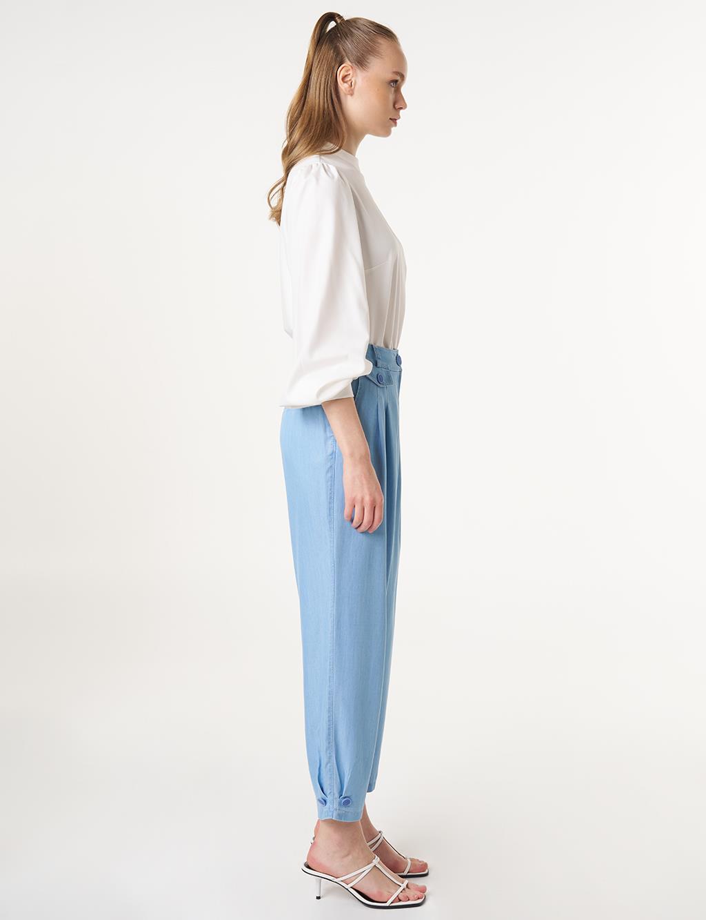 The Kayra Button-Hem Denim Effect Pants combine comfort and style for an effortlessly cool look. Finished with button details at the hems, this relaxed-fit design is perfect for everyday wear. Pair it with tunics, blouses, t-shirts, or accessories for a complete, stylish outfit.