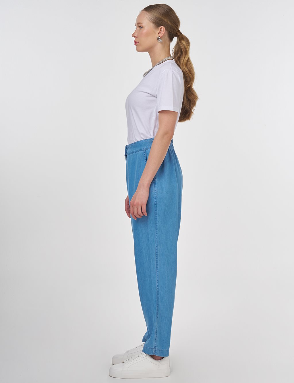 The Kayra Relaxed Fit Lyocell Pants stand out with their lightweight and breathable fabric. Offering all-day comfort with their relaxed cut, these pants can be effortlessly styled with tunics, t-shirts, earrings, bags, or other accessories.