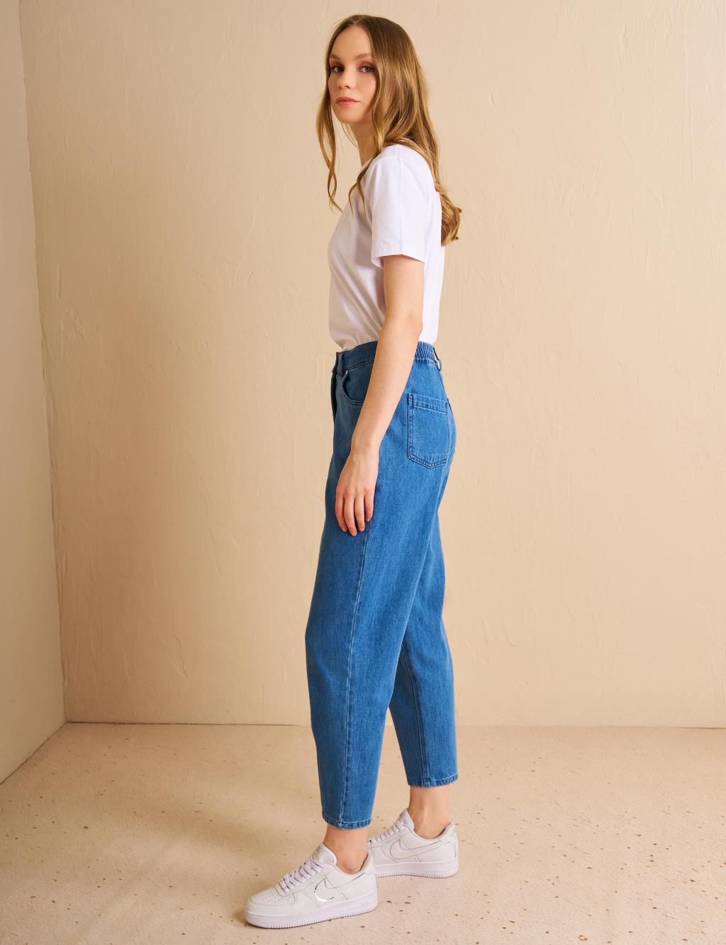 The KYR Carrot Cut Denim Pants with Pocket Details stand out with their modern cut and comfortable fit. These versatile denim pants with functional pockets can be worn throughout the year. For an ideal look, pair them with a t-shirt, shirt, or sneakers.