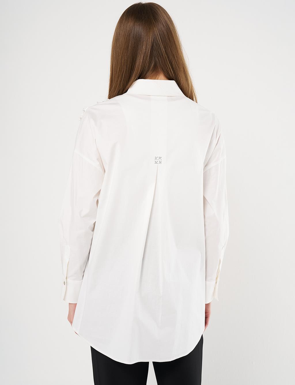 Kayra Ruffled Cotton Tunic offers an elegant and modern style. Featuring eye-catching ruffle details, this tunic combines the lightness and comfort of poplin fabric. It enhances your look for both everyday wear and special occasions. For an ideal look, pair it with denim, trousers, or accessories.